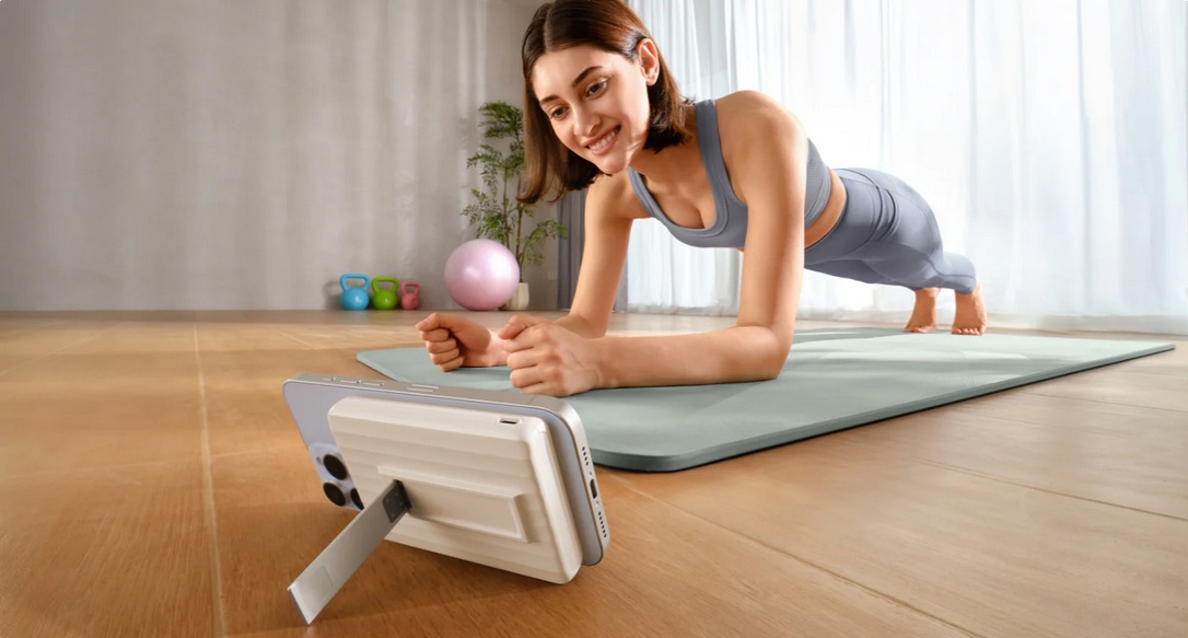 Pevné magnetické uchycení mobilu pomocí magnetů N52 a skládací vestavěný stojánek umožňují využití EcoFlow RAPID Mag Power Bank 10K i jako podpory, která zajistí pohodlné sledování videí nebo četbu zpráv na displeji telefonu.