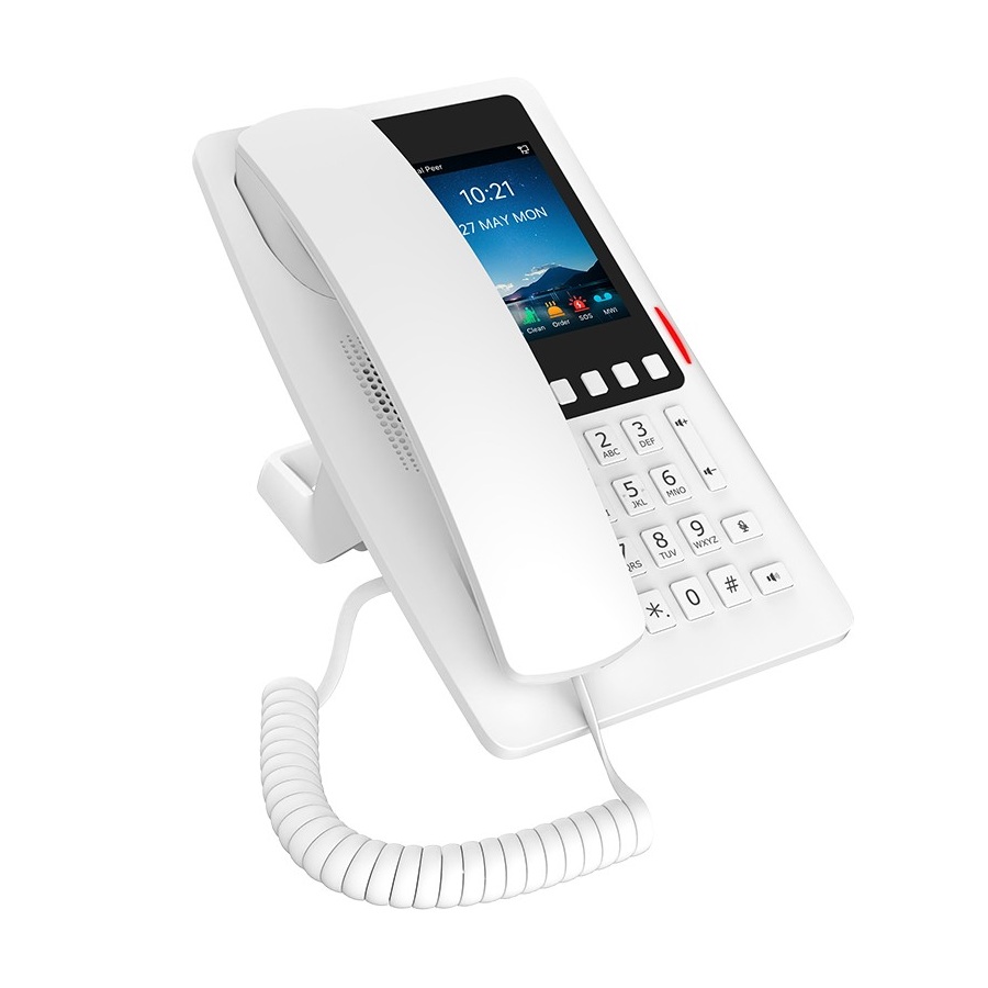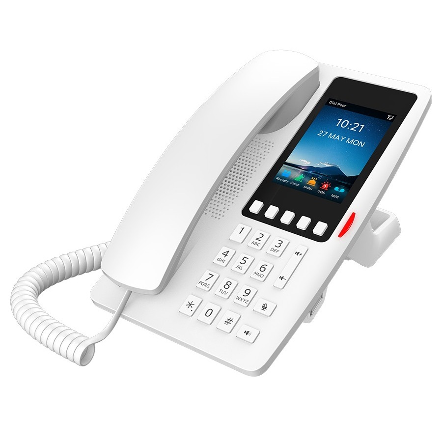 Fanvil H6W je cenově dostupný Wi-Fi IP telefon s mnoha funkcemi a elegantním vzhledem. Je vybaven 5 programovatelnými softwarovými tlačítky pro servisní linku, což vyhovuje různým hotelovým prostředím. H6W má vestavěnou dvoupásmovou Wi-Fi 2,4 GHz a 5 GHz Více