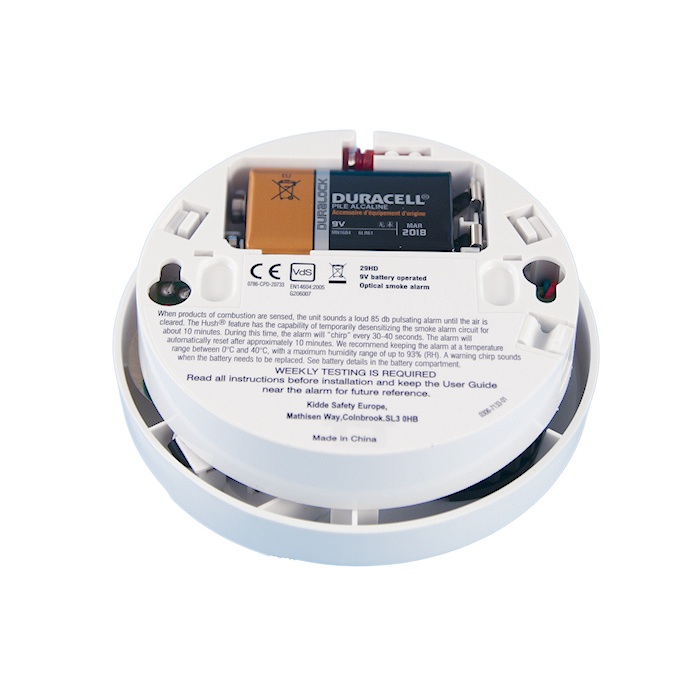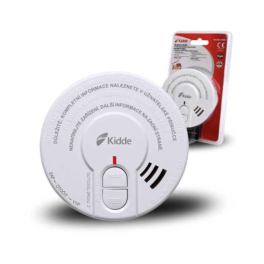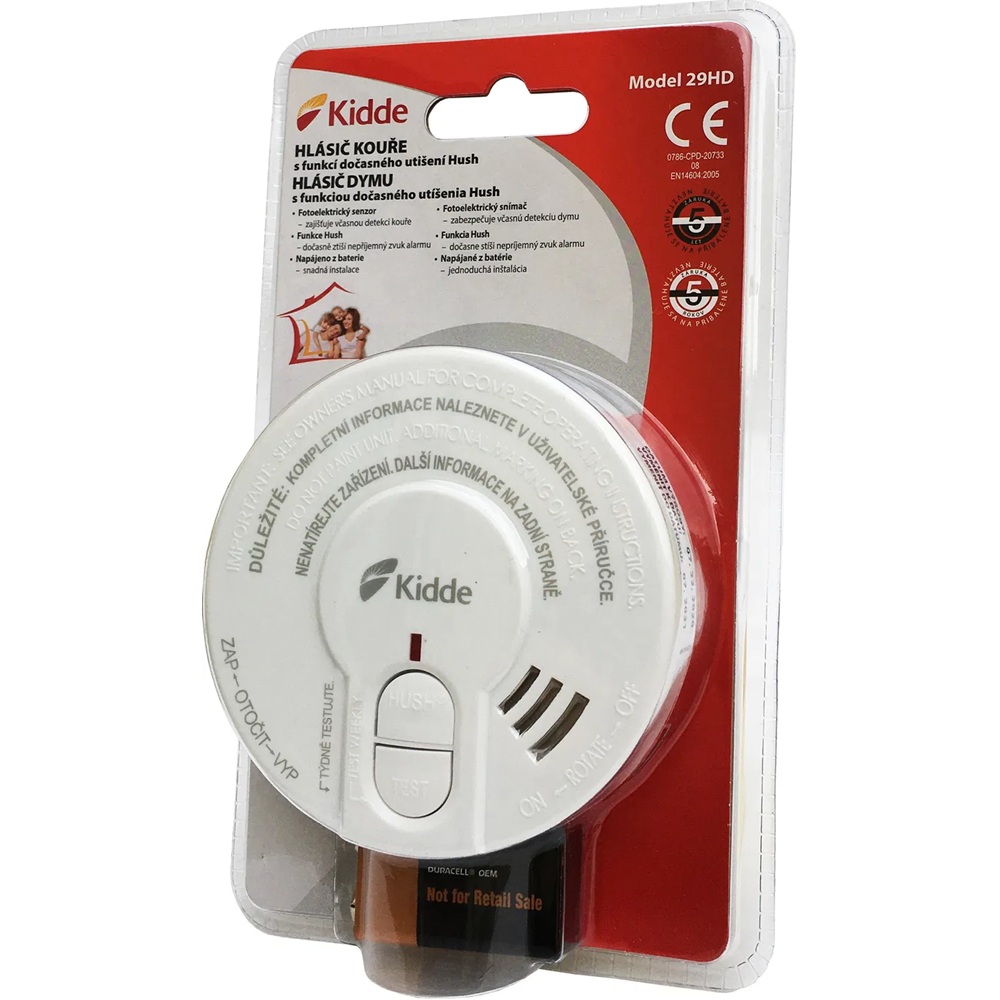 Detektor kouře a požáru Kidde 29HD určený k nepřetržitému monitorování ovzduší na přítomnost kouře a ohně s 9V alkalickou baterií pro napájení hlásiče po dobu až 12 měsíců. Záruka na přístroj 5 let! Tento autonomní hlásič požáru splňuje požadavky ČSN EVíce