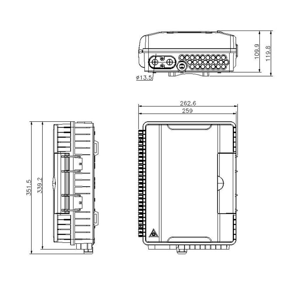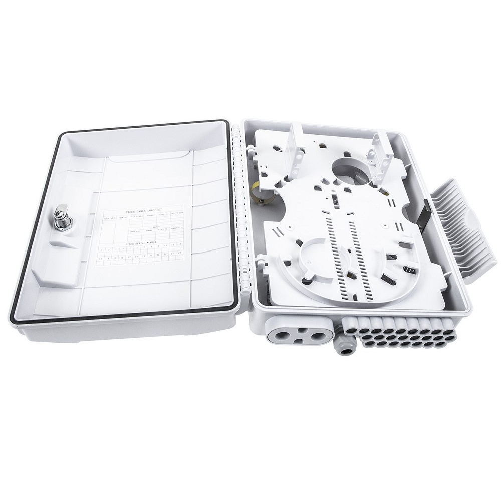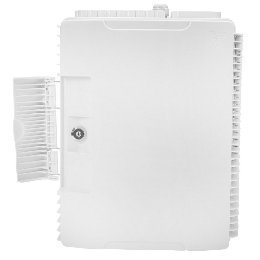 Venkovní FTTH spojovací box pro montáž na stěnu s ochranou IP65, vhodný pro ukončení/spojování optického kabelu v koncovém vchodu při výstavbě FTTH sítí. Uvnitř boxu se nachází (1) plastová kazeta a sloty pro až (24) SC simplex spojek. Součástí balení jsoVíce