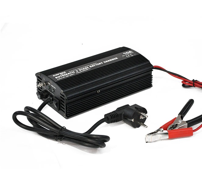 Nabíječka 24V/10A spínaná pro Pb aku, CARSPA ENC 2410. Kvalitní a výkonná nabíječka olověných akumulátorů značky CARSPA s max. nabíjecím proudem 10A. Nabíječka Carspa obsahuje 3 automatické fáze nabíjení, ochranu proti přepólování, zkratu na výstupu, Více