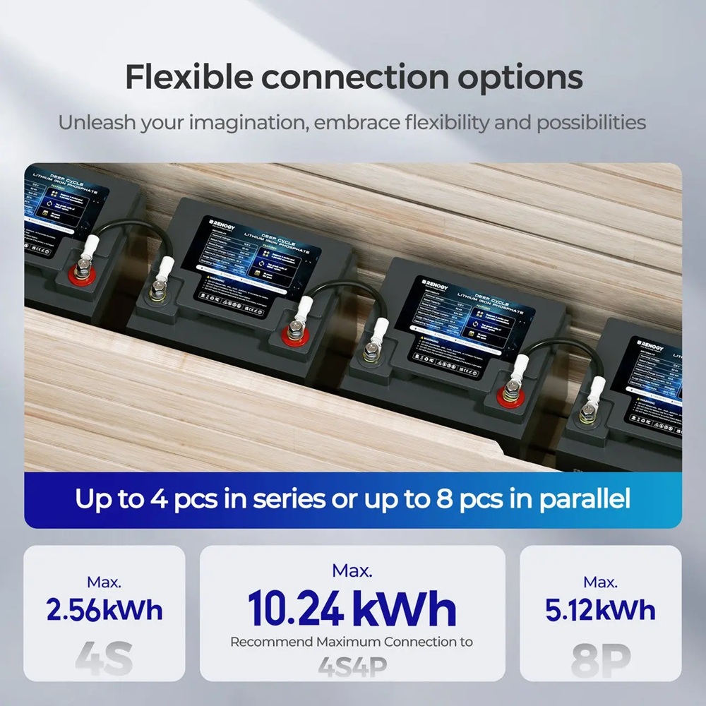 Renogy baterie nabízí konzistentní a dlouhotrvající zdroj energie pro důležité spotřebiče a elektroniku. Díky své vysoké kapacitě může baterie udržet vaše notebooky, telefony a další zařízení v chodu i během dlouhých cest.