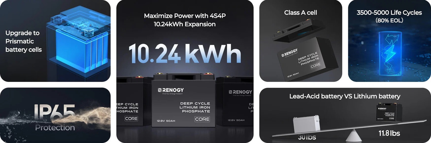 Renogy CORE 50Ah 12V LiFePO4 Lithium Battery Deep Cycle