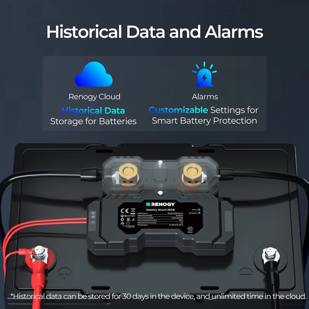 Kromě monitorování dat v reálném čase pomáhá bateriový Shunt 300 také zaznamenávat historická data prostřednictvím aplikace Renogy ONE Core a DC Home, což vám umožňuje přijímat rozumná rozhodnutí o celém vašem energetickém systému.