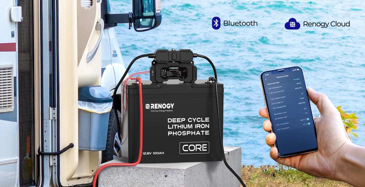 Monitoring a ovládání pomocí aplikace Renogy ONE Core / DC Home App. Kompatibilní s různými bateriemi: Olověné, LFP, Li-ion a Ni-MH, LiFePO4. Zobrazuje stav nabití, teplotu a napětí baterie. Zaznamenává historická data a vydává upozornění prostřednictvím Více