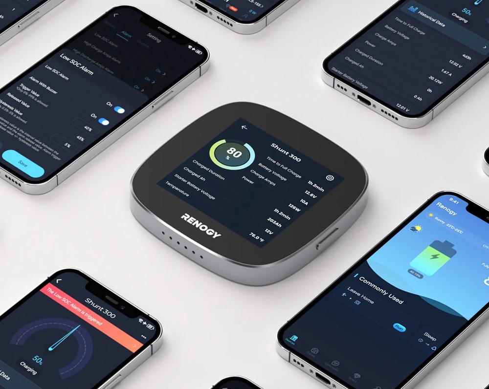 Při spárování s Renogy ONE Core a DC Home poskytuje Shunt 300 bezproblémové zobrazení dat v reálném čase.
