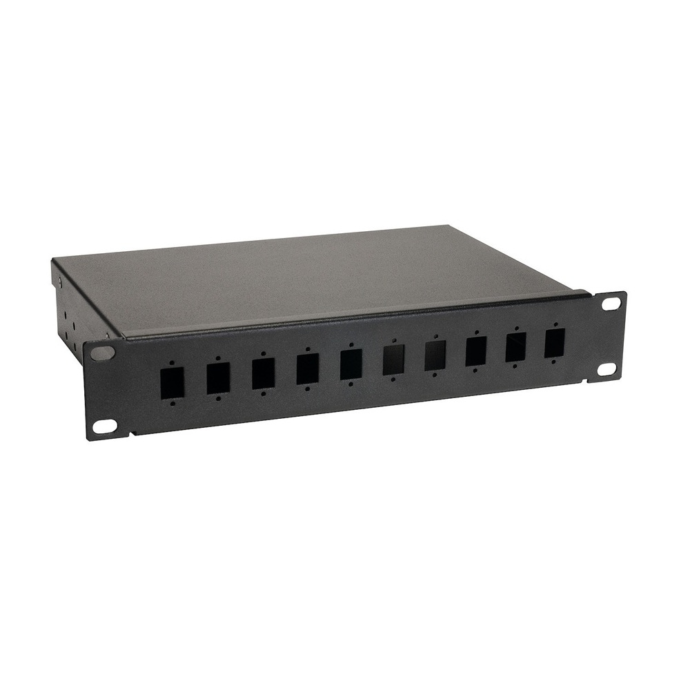 Solarix FO-10-1-10SCS-B optická vana k ukončení optických kabelů v datových rozvaděčích s upevněním do 10" rámů. Parametry produktu: Barva: černá Velikost: 10", 1U Porty: 10 x SC Rozměry: 215 × 158 × 44,5 mmVíce