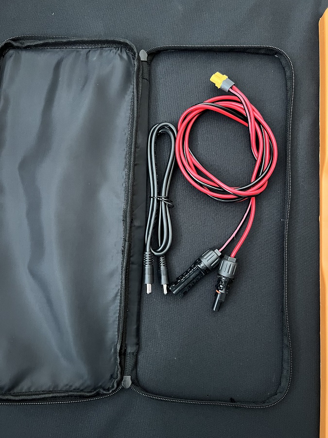 Solární panel je vybavený monokrystalickými články s účinností až 22%, odolným nylonovým pouzdrem, zabudovanou kapsou. Součástí je i skládací podpěra pro snadné rozložení.