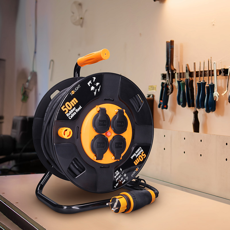 Prodlužovací kabel na navíjecím bubnu s délkou 50 metrů a čtyřmi zásuvkami je ideální pro použití venku, na stavbách nebo v dílnách. Gumový kabel zajišťuje odolnost proti povětrnostním podmínkám a mechanickému namáhání. Produkt je navržen pro bezpečné a spolehlivé připojení stavebních, zahradních i méně náročných průmyslových zařízení.