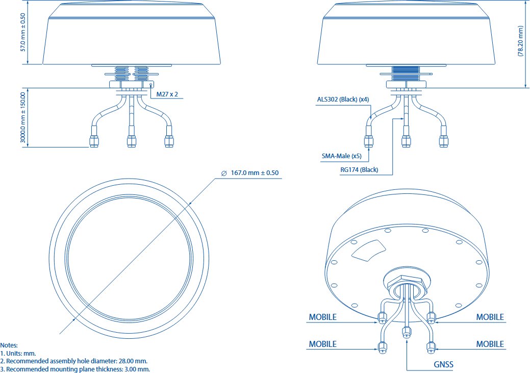 Kombinovaná střešní anténa od výrobce Teltonika integruje dva druhy antén do jedné - pro 5G a GNSS. S délkou kabelu 3 metry a konektory 5x SMA male nabízí snadnou instalaci. Určena pro venkovní použití na střechu, zajišťuje robustní konektivitu. Stupeň krVíce