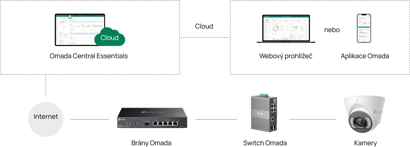 - Centralizovaná cloudová správa přes web nebo aplikaci Omada