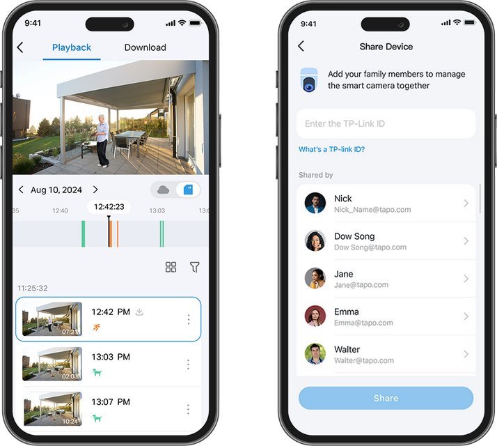 Díky kompaktnímu designu a možnosti montáže na stůl, stěnu, strop nebo tyč můžete tuto kameru snadno umístit podle potřeby. 360° horizontální otáčení a 151° vertikální naklápění zajistí, že pokryjete větší prostor bez nutnosti několika kamer. S vestavěným mikrofonem a reproduktorem je komunikace s rodinou nebo návštěvami snadná díky obousměrnému audiu. Pro uchování důležitých záznamů máte k dispozici možnosti lokálního a cloudového úložiště, což znamená, že se k nahrávkám dostanete kdykoli a odkudkoli.