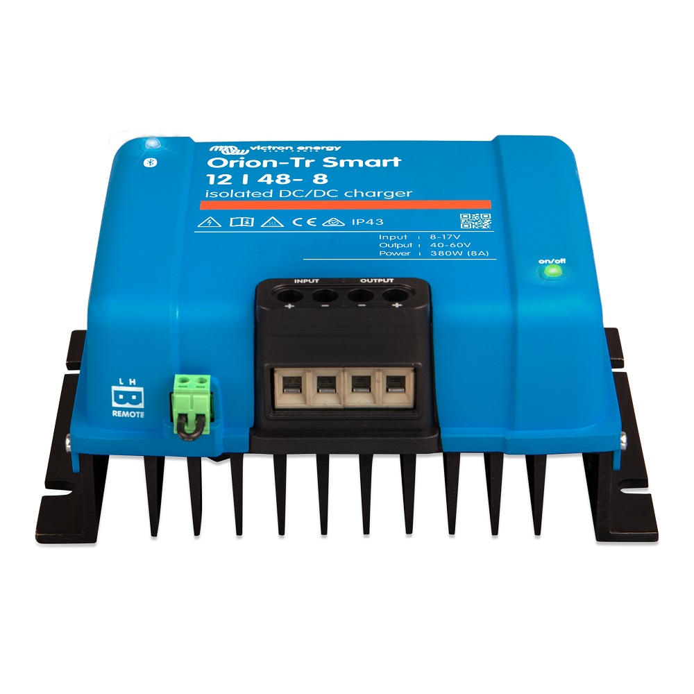 Orion-Tr Smart 12/48-8 je pokročilá izolovaná DC-DC nabíječka určená pro nabíjení 48V baterií z 12V systému. Nabíječka je vybavena adaptivním třístupňovým algoritmem nabíjení, vzdáleným ovládáním, možností použití jako stabilizovaný zdroj napětí a funkcemVíce