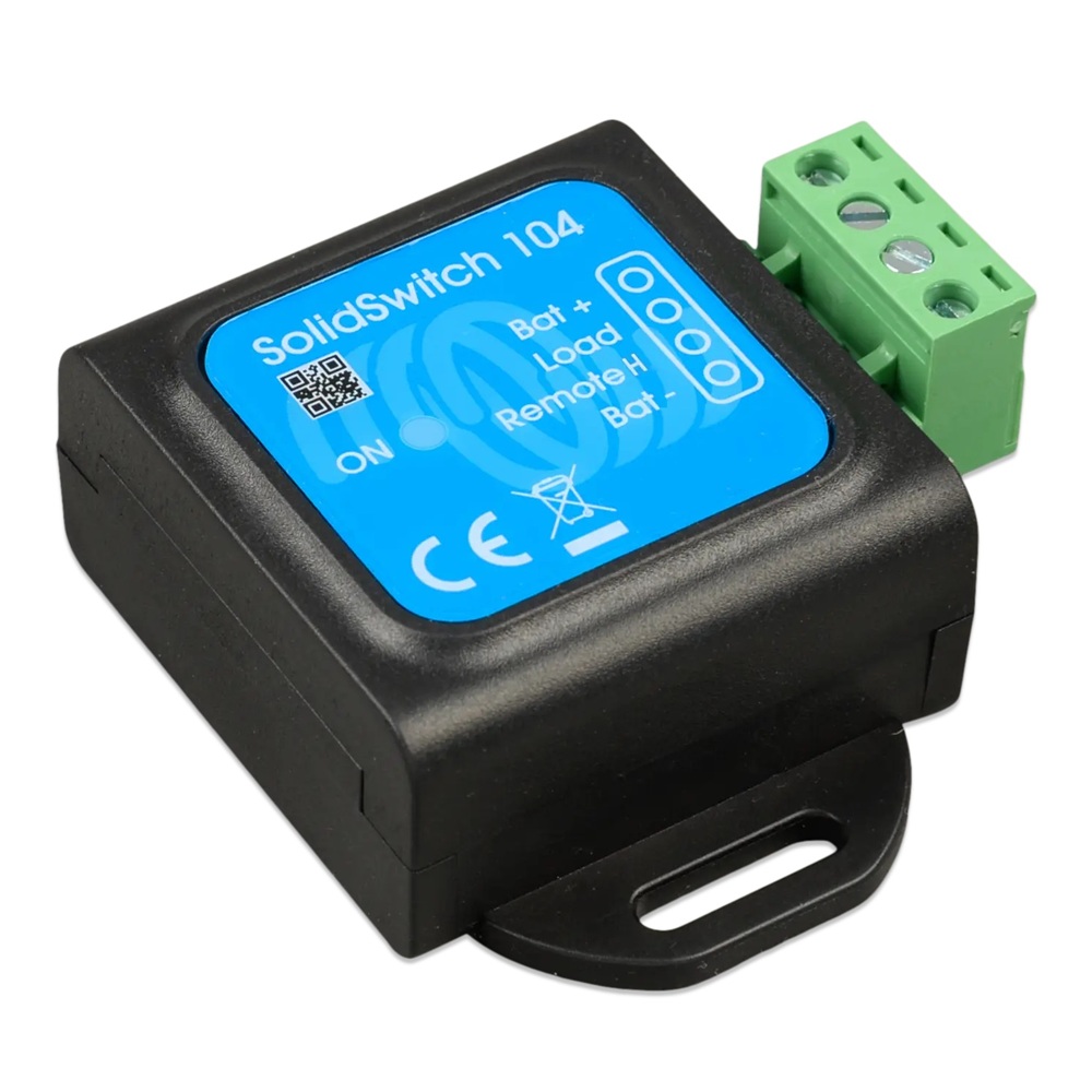 SolidSwitch 104 je polovodičový DC spínač určený pro spínání stejnosměrných zátěží až do 70 V a 4 A. Ovládá se nízkovýkonovým digitálním signálem, přičemž jeho vlastní spotřeba je velmi nízká. Díky tomu je vhodný zejména pro použití v lithiových systémechVíce