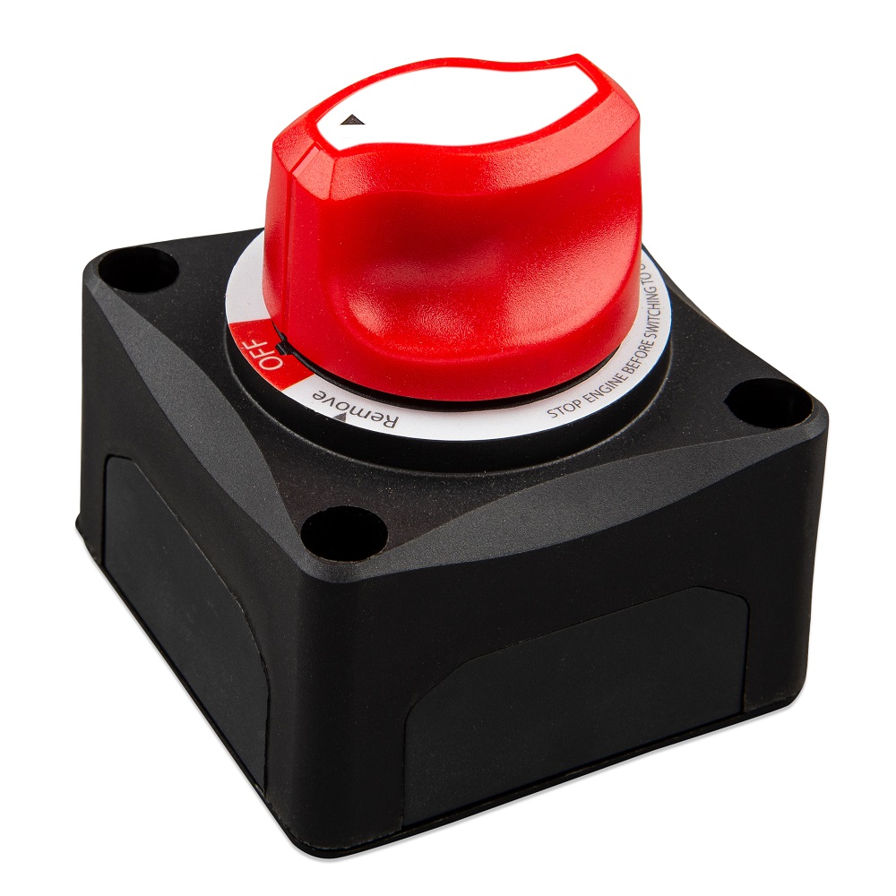 Bateriový odpojovač Battery Switch ON/OFF 275A je vhodný pro bateriové systémy do 48 V. Má jedinečný ergonomický a estetický design knoflíku. Knoflík je odnímatelný z bezpečnostních důvodů nebo za účelem přidání izolace. Bateriový odpojovač lze namontoVíce