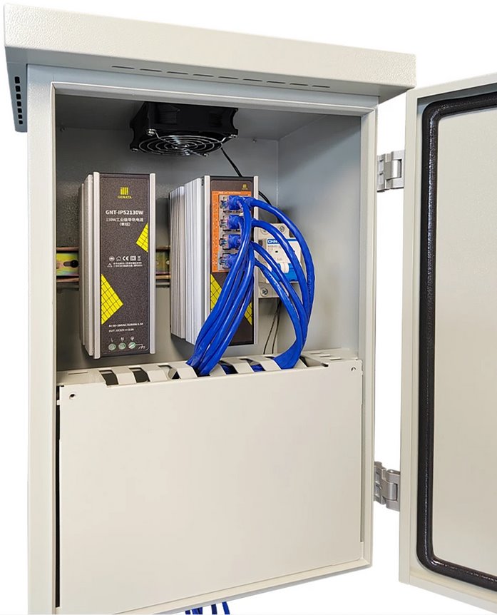 Krabice je vybavena aktivním chlazením pro dostatečnou cirkulaci vzduchu a snížení teploty uvnitř rozvaděče. Vestavěná správa kabelů ve spodní části usnadňuje organizaci kabelů. Díky DIN liště uvnitř rozvaděče na zadní straně lze snadno instalovat elektrické prvky jako jsou AC/DC zdroje, Routery, Switche, EZS a jiné prvky. Univerzální vodotěsná krabice nabízí široké spektrum použití, zahrnující různé venkovní aplikace, jako jsou bezpečnostní a kontrolní systémy, s důrazem na spolehlivost a ochranu elektroniky.