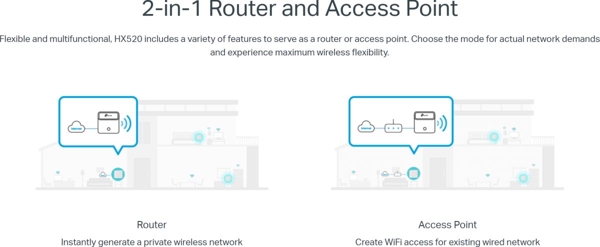 TP-Link HX520 je perfektní dual-band Access Point, který dokáže jednoduchým způsobem pokrýt vaši domácnost Wi-Fi signálem. Každá jednotka obsahuje 1 gigabitový LAN/WAN port a 2 gigabitové porty. Jednotka využívá osvědčenou metodu připojení pomocí EasyMeshVíce