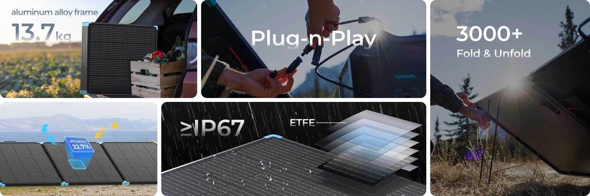 Lehký přenosný solární panel Renogy 400W váží pouhých 14 Kg. Lehký a odolný solární kufr s vysokým výkonem a robustními stojany, navržený pro spolehlivý výkon, ať už ho potřebujete kdekoli. Okamžité záložní napájení Snadno se spáruje s přenosnou napáVíce