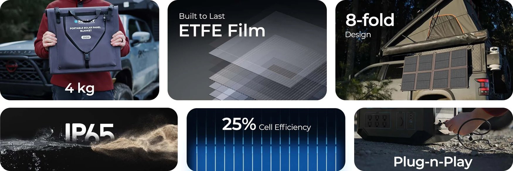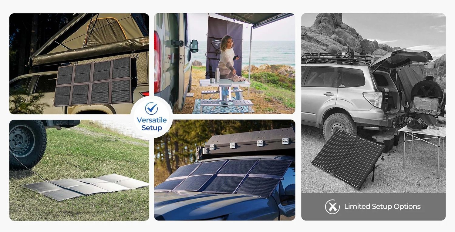- Flexibilní a přenosný design: Díky své lehké a flexibilní konstrukci je Renogy Solar Blanket 200W snadno sbalitelný a přenosný. Panel se dá snadno složit a uložit do kompaktního balení, což je ideální pro cestovatele, kteří potřebují ušetřit místo