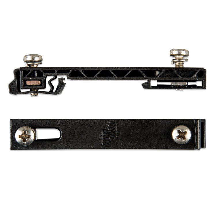 Balení obsahuje 2 ks plastových držáků pro montáž 1 ks Cerbo GX do lišty.