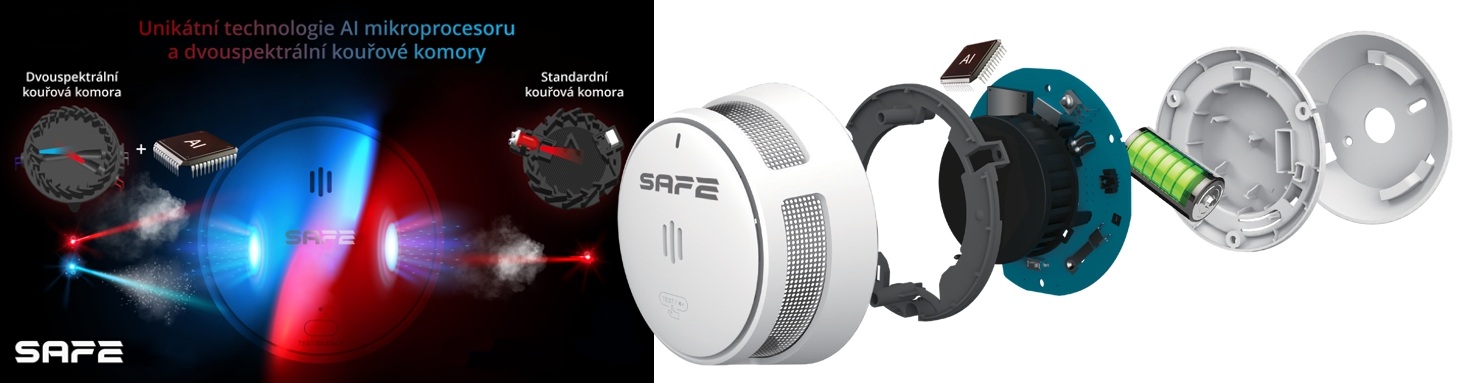 U systémů detekce požáru v obytných budovách je prioritou včasné informování osob o hrozícím reálném nebezpečí. AI SAFE mikroprocesor byl vyvinut na základě podrobné analýzy vlastností hoření materiálů a pracuje s predikčním algoritmem, který porovnává data z dvouspektrálního optického senzoru a filtruje potenciální možnost falešných poplachů v reálném čase. Pokud zaznamenaná data odpovídají kapalným částicím vodní páry nebo jiným druhům výparů hlásič nebude reagovat. Jestliže však dynamika vzorce dat odpovídá skutečným parametrům kouřových pevných částic požáru hlásič neprodleně spustí požární poplach.