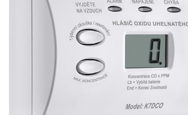 Detektor Kidde K7DCO je navíc vybaven funkcí simulačního testu pro rychlou kontrolu správné reakce senzoru CO na testovací plyn.
