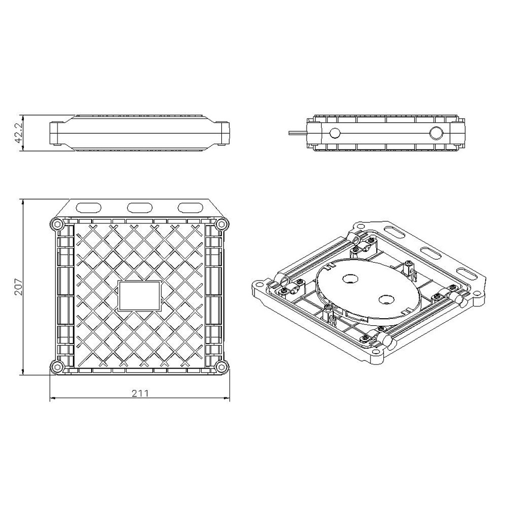Venkovní optická spojka s krytím IP65, určená pro spojování optických kabelů s kapacitou až (24) vláken v (1) vestavěné kazetě. Součástí balení jsou teplem smrštitelné bužírky a stahovací pásky. TechnicVíce