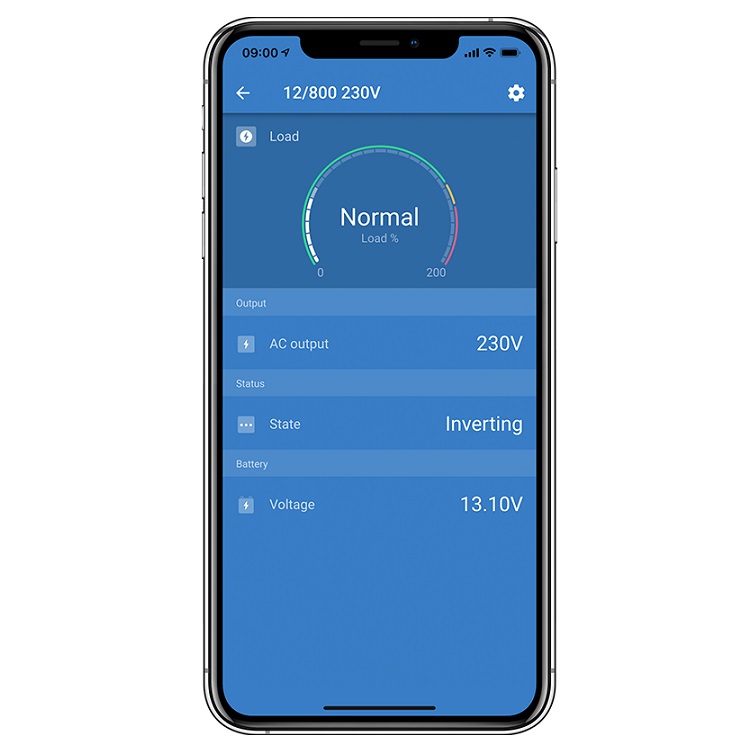 Aplikace VictronConnect se používá k monitorování, ovládání a konfiguraci měniče. Aplikaci lze nainstalovat do telefonu, tabletu nebo počítače. Aplikace je dostupná pro Android, iOS, Windows a macOS. Aplikace komunikuje buď přes Bluetooth, nebo přes USB rozhraní s portem VE.Direct.