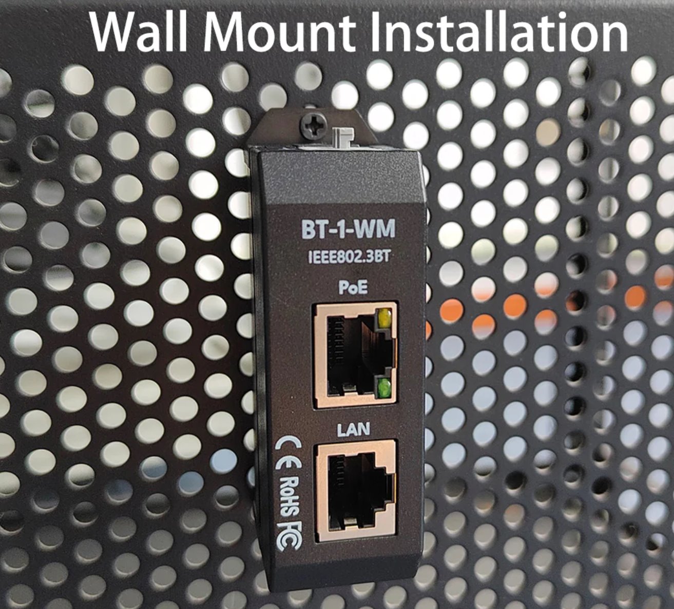 Maxlink BT-1-WM je jednoduchý aktivní PoE injektor s podporou standardů 802.3af/at/bt a také 2.5G ethernetu (10/100M/1/2.5G). Je vybaven dvojicí stíněných ethernetových konektorů (1x vstup, 1x výstup) a napájení probíhá po 4 párech (napájení po 2 párech jVíce