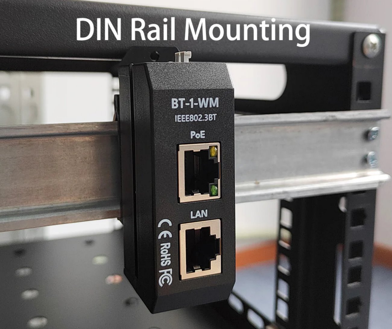 Díky důmyslné konstrukci lze injektory spojovat do kompaktních celků a montovat je nejen na zeď, ale také na DIN lištu. Držák na DIN lištu je součástí balení.