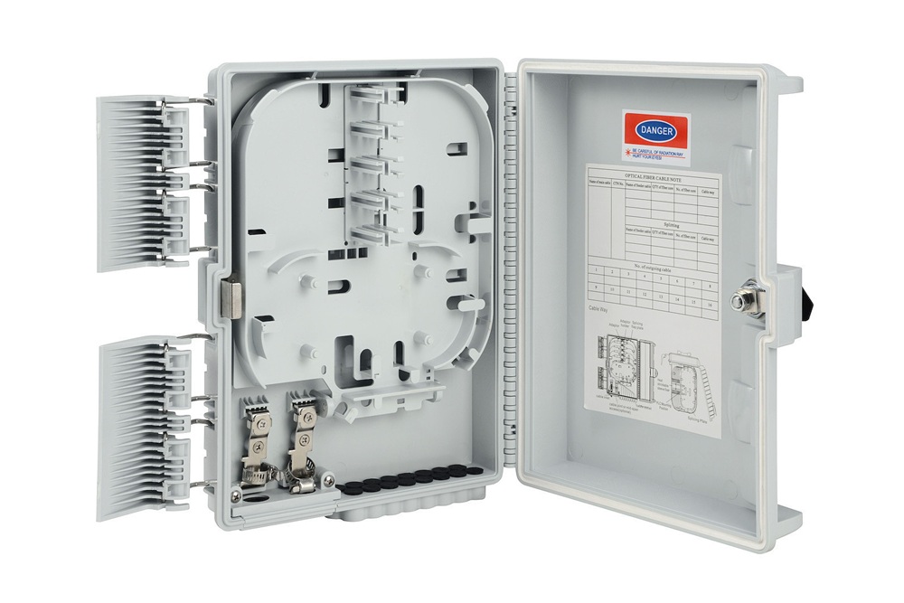 Univerzální nástěnný optický box pro vnitřní i vnější použití. Optický nástěnný box slouží k ukončení optických kabelů ve venkovních i vnitřních instalací. Tento optický box se vyznačuje vysokým stupněm krytí IP65. Povrch optického nástěnného boxu je UVíce