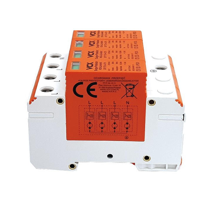 Modulární přepěťová ochrana VCX-L2-4-B+C 12.5 kA třídy T1 T2 je určená k ochraně napájecích instalací NN proti indukovaným a spínacím přepětím. Lze instalovat v sítích typu TN-S, TN-C, IT a TT.Více