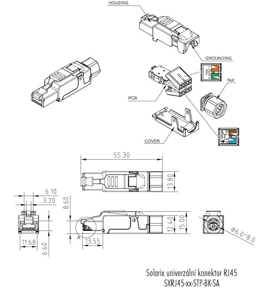 Solarix konektor průmyslový univerzální RJ45 CAT5E STP samořezný, SXRJ45-5E-STP-BK-SA
