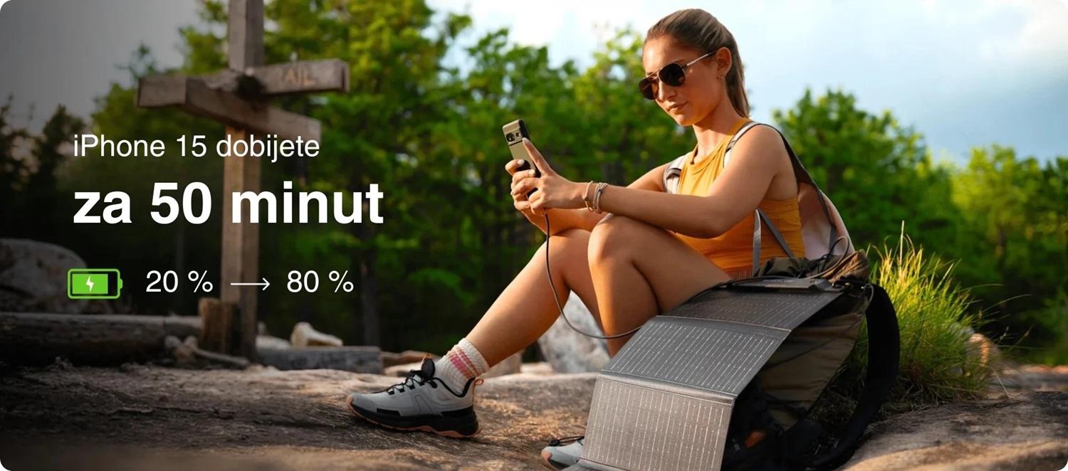 Pohodlně se upevní na batoh nebo stan a disponuje výstupy USB-A a USB-C. I během túry tak může průběžně dobíjet mobil, fotoaparát i powerbanku.