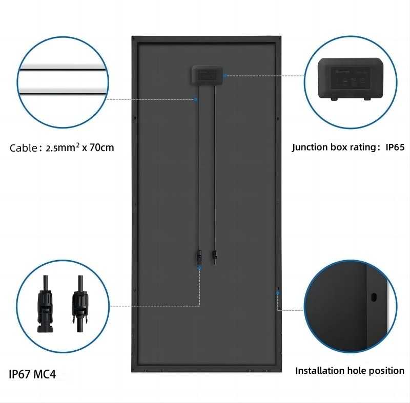 - Panel vysokého výkonu a s rychloupínacím systémem s konektory MC4.
