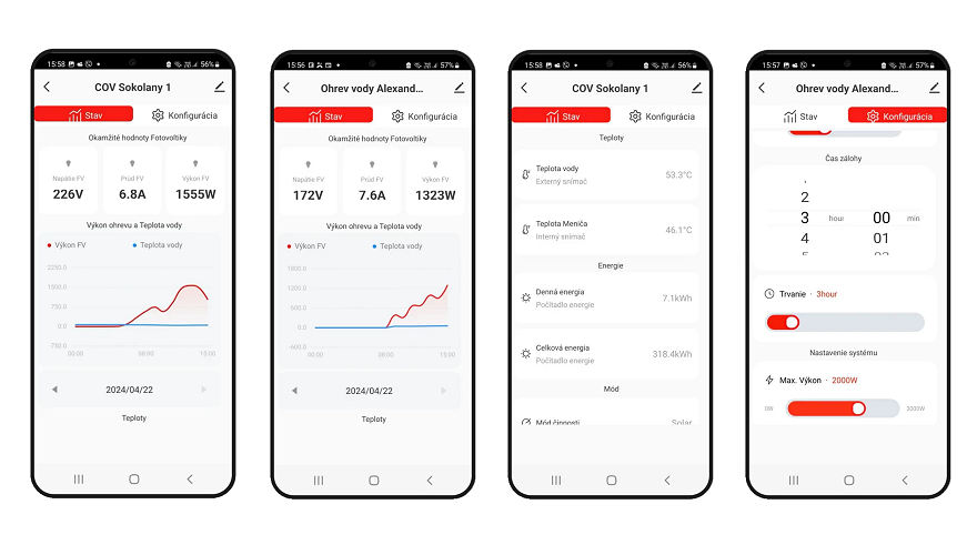 • Automatické přepínání mezi FV a sítí s prioritou FV ohřevu.