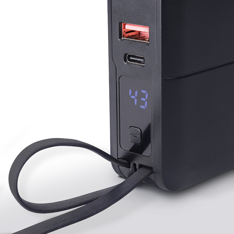 Power banka 10 000 mAh s bezdrátovým nabíjením. Výkonná power banka s kapacitou 10 000 mAh a bezdrátovým nabíjením (až 15W) umožňuje rychlé a pohodlné nabíjení vašich zařízení. Nabízí vstupy a výstupy USB-C, USB-A, Lightning kabel a USB-C kabel, takže je kompatibilní s širokou škálou zařízení. Podporuje rychlé nabíjení (USB-C: 5V/3A, 9V/2.22A, 12V/1.67A, USB-A: 5V/3A, 9V/2A, 12V/1.5A, 5V/4.5A).