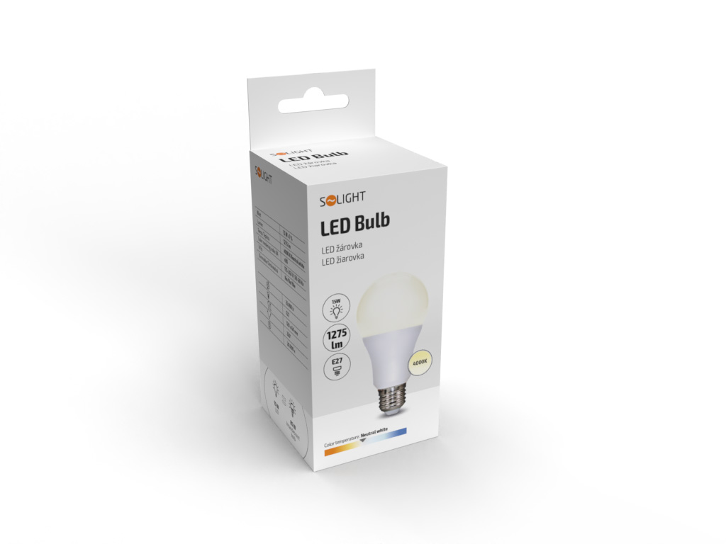 Solight LED žárovka s klasickým tvarem. Technické parametry: - spotřeba: 15W; - světelný tok: 1275lm (odpovídá tradiční 87W žárovce); - teplota chromatičnosti: 4000K (neutrální bílá); - životnost LED: 25.000 hodin; - počet spínacích cyklů: 20.000x; -Více