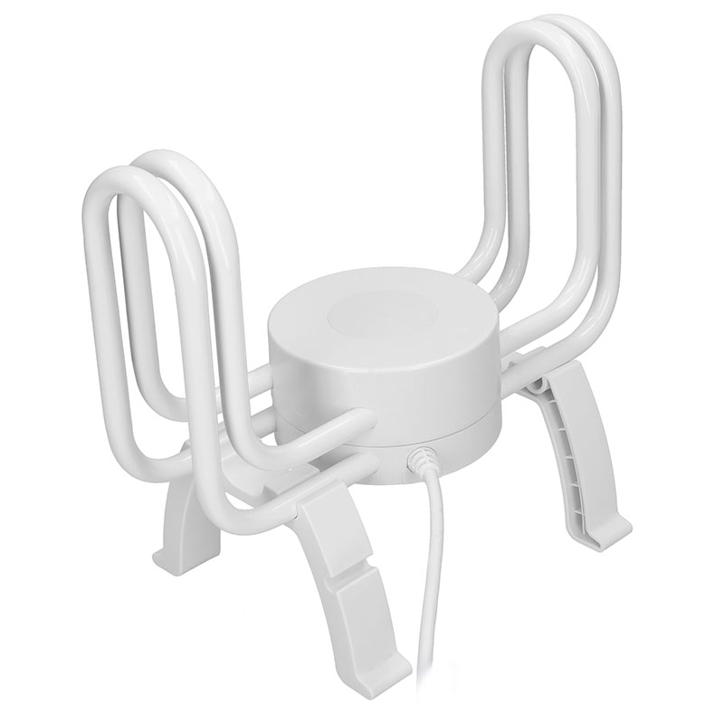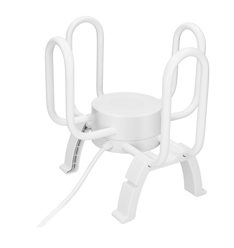 Sušák na boty Sušák obuvi a rukavic pro až 2 páry najednou. Ovládání pomocí přepínače zapnutí/vypnutí se světelným indikátorem. Příkon 40 W a napájení 220–240 V/50Hz. Rozměry: 26 cm (šířka) x 30 cm (výška) x 25,5 cm (hloubka). Hmotnost: přibližně 0,9 kg.Více