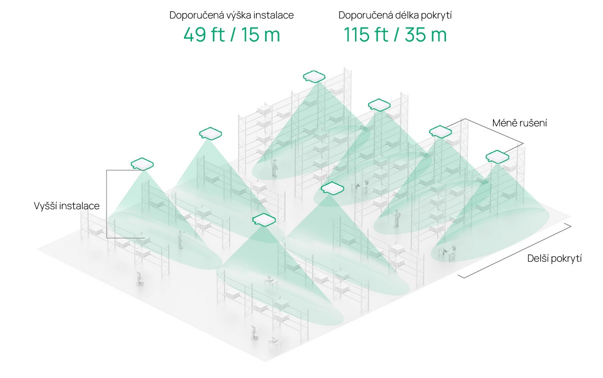 Zařízení podporuje 802.3at PoE a technologii Omada Mesh, což umožňuje rychlou instalaci a snadné rozšiřování sítě bez složitých kabelových rozvodů. Díky centralizované správě cloudu lze mít celou síť pod kontrolou z jediného rozhraní – ať už prostřednictvím aplikace Omada, nebo webového uživatelského rozhraní. Tato kombinace přináší maximální flexibilitu, úsporu času a profesionální úroveň správy sítí pro firmy všech velikostí.