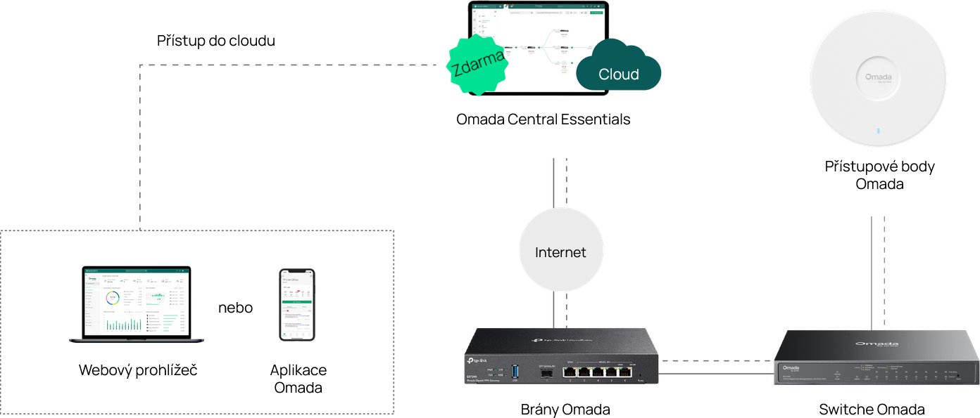 - Plug-and-play a centralizovaná správa v cloudu přes Omada
