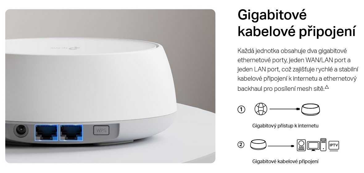 - Gigabitová rychlost po kabelu: 1× Gigabit WAN/LAN port a 1× Gigabit LAN port.