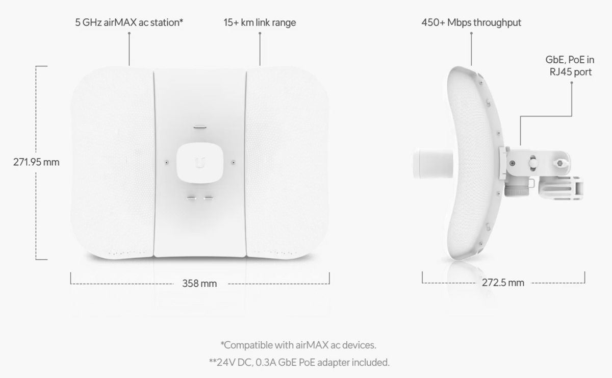 LiteBeam 5AC-Gen2 kombinuje proprietární hardwarové a softwarové technologie do nákladově dostupného zařízení. Mezi výhody patří InnerFeed technologie, airMAX TDMA protokol, vylepšený držák a vestavěná vodováha umožňující velmi rychlé a správné nasazení a také velmi kompaktní rozměry pro úsporu nákladů při přepravě.
