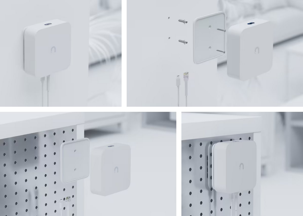 Velice elegantní a praktický magneticý držák určený pro jednoduché přichycení UniFi Express 7 od Ubiquiti Networks na zeď pomocí 2 šroubků, které jsou součástí balení. Celkové rozměry držáku jsou 110 x 110 x 8 mm a je vyroben z polykarbonátu a silikonové Více
