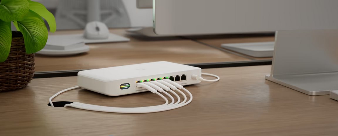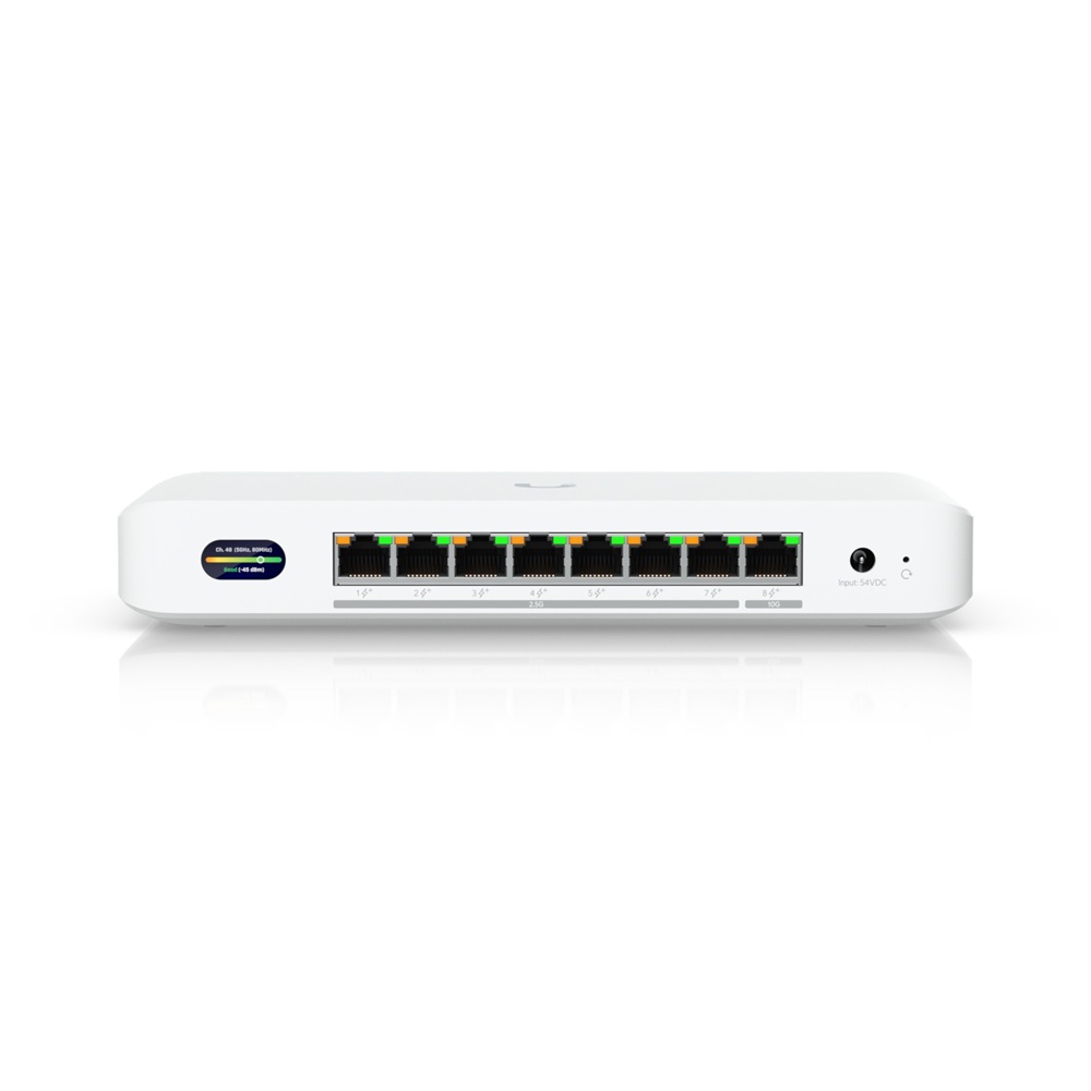 Pro připojení koncových zařízení nabízí switch jeden 10GbE uplink a sedm 2,5GbE portů, což umožňuje flexibilní a vysokorychlostní vnitřní infrastrukturu. Všech osm portů podporuje PoE+ s výkonem až 30 W na port. V základní konfiguraci poskytuje 35 W celkového PoE výkonu, který lze s volitelným 210W adaptérem navýšit až na 185 W—ideální pro napájení náročnějších zařízení, jako jsou kamery, senzory nebo přístupové body. Díky plné podpoře VLAN a správě přes UniFi Network získává uživatel přehlednou kontrolu nad celou sítí.