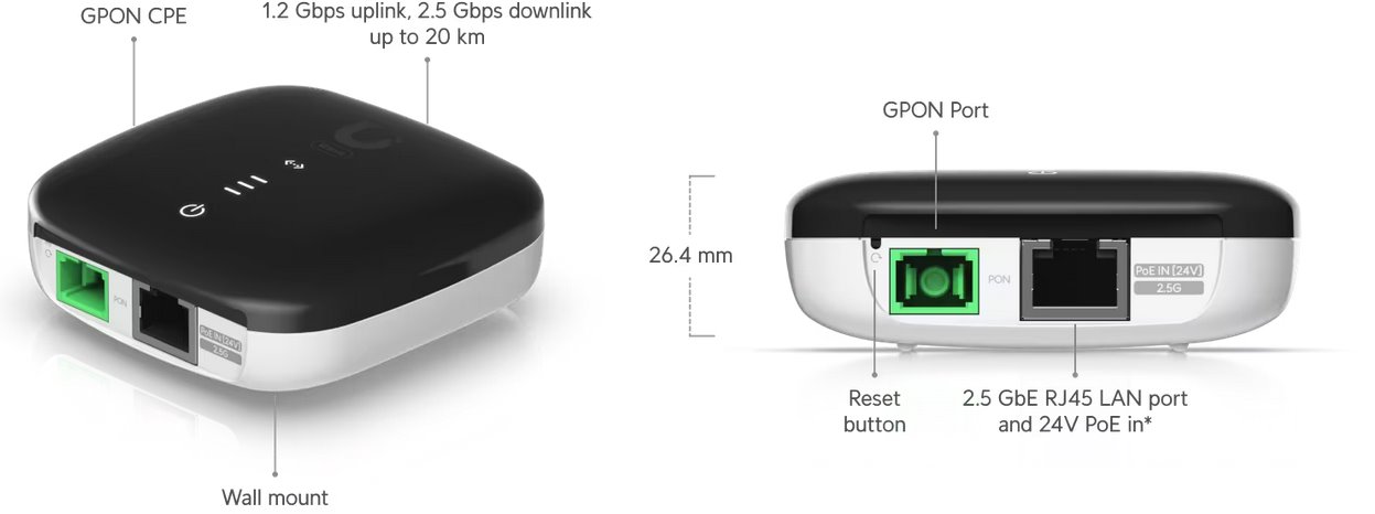 Kompaktní GPON ONU určená pro FTTH instalace s podporou rychlého připojení až 2,5 Gbps downlink / 1,2 Gbps uplink na vzdálenosti až 20 km. Vybavena jedním optickým portem SC/APC a jedním 2,5 GbE RJ45 LAN portem, usnadňuje distribuci vysokorychlostního intVíce